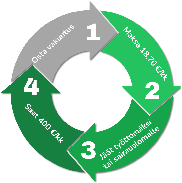Elämäntilanteet muuttuvat, tulevaisuus on avoin ja ennustamattomissa. Mitä tahansa saattaa tapahtua, mutta olisi hienoa pitää kiinni taloudellisesta vakaudesta, eikö? Oletko miettinyt, miten maksat laskut, jos sairastut tai joudut työttömäksi ja tulosi tippuvat puolella?